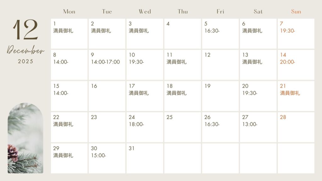 2025.12.242023.07.11 -Welcome- 私たちは、 オンラインを中心に活動する、 カルチャースクールです。 誰かの想い・ありがとうをカタチに 心の支え・成長 をテーマに日々活動しています。 「勉強」「学童」「ハンドメイド」 「ヨガ」「パーソナル」 を展開しています(๑•̀ㅂ•́)و✧ 是非、一緒に楽しみましょう。 Pick up News [2025/12/3]整体空き状況更新(๑•̀ㅂ•́)و✧ 2025年も沢山の皆様ご愛顧いただき有難うございました!!空きは残4日となっております。お早めにどうぞ♪ [2025/11/8]WS有難うございました(๑•̀ㅂ•́)و✧