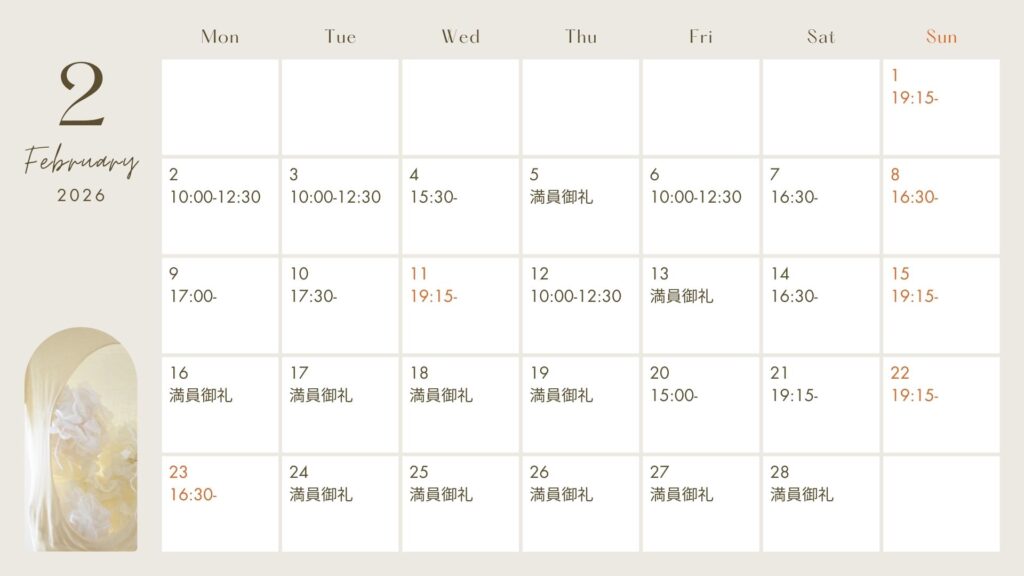 2026.01.212023.07.11 -Welcome- 私たちは、 オンラインを中心に活動する、 カルチャースクールです。 誰かの想い・ありがとうをカタチに 心の支え・成長 をテーマに日々活動しています。 「勉強」「学童」「ハンドメイド」 「ヨガ」「パーソナル」 を展開しています(๑•̀ㅂ•́)و✧ 是非、一緒に楽しみましょう。 Pick up News [2025/1/21]整体空き状況更新(๑•̀ㅂ•́)و✧ お早めにご予約頂戴しています。お早めに(๑•̀ㅂ•́)و✧